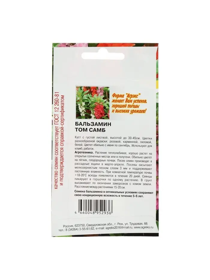 Семена цветов однолетние Бальзамин Том Самб 0,1 г