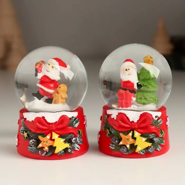 Снежный шар стеклянный «Новогодний персонаж с бантом, ёлочкой», 4.7×4.7×6.5 см, МИКС