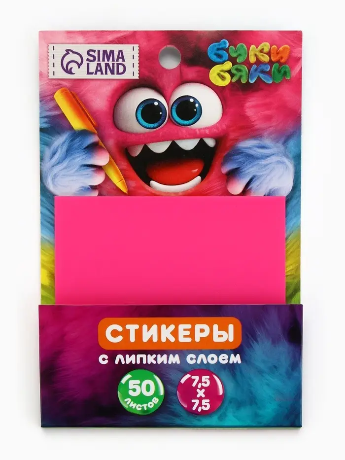 Прозрачные стикеры с липким слоем 75х75мм, 50 листов Буки Бяки, цвет розовый