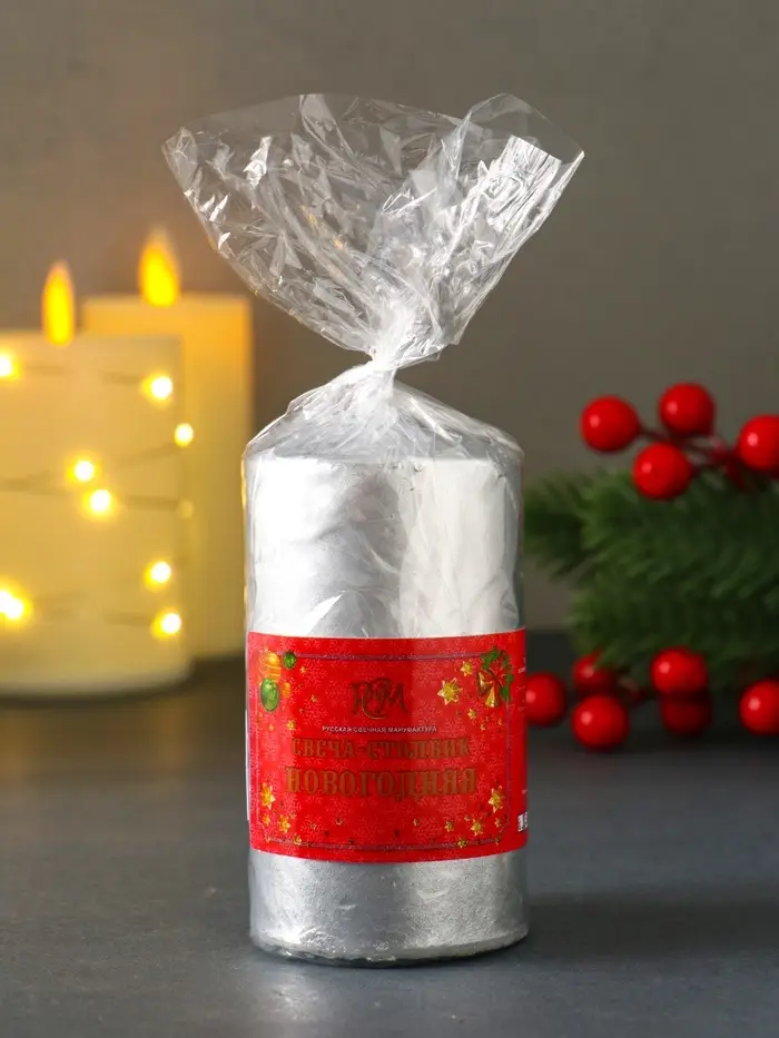 Свеча-столбик новогодняя 100х50 см, цв. серебряный