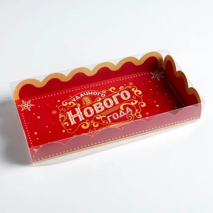 Коробка для кондитерских изделий с PVC крышкой «Удачного Нового года», 10.5 х 21 х 3 см