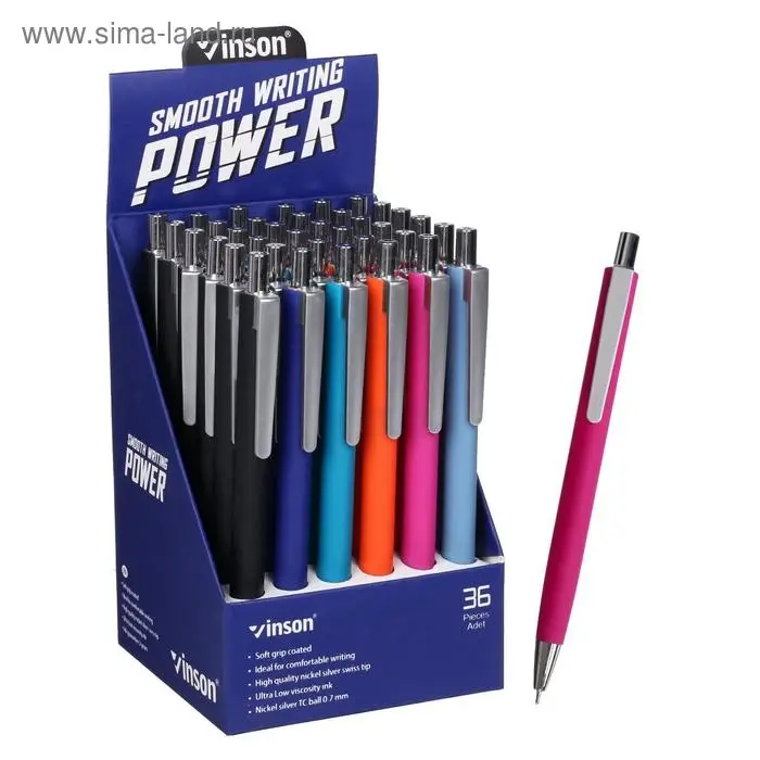 Ручка шариковая автоматическая Vinson, 0,7мм, корпус c резиновым держателем, синяя масляная, МИКС