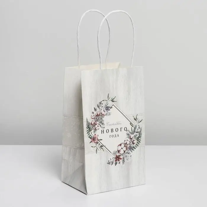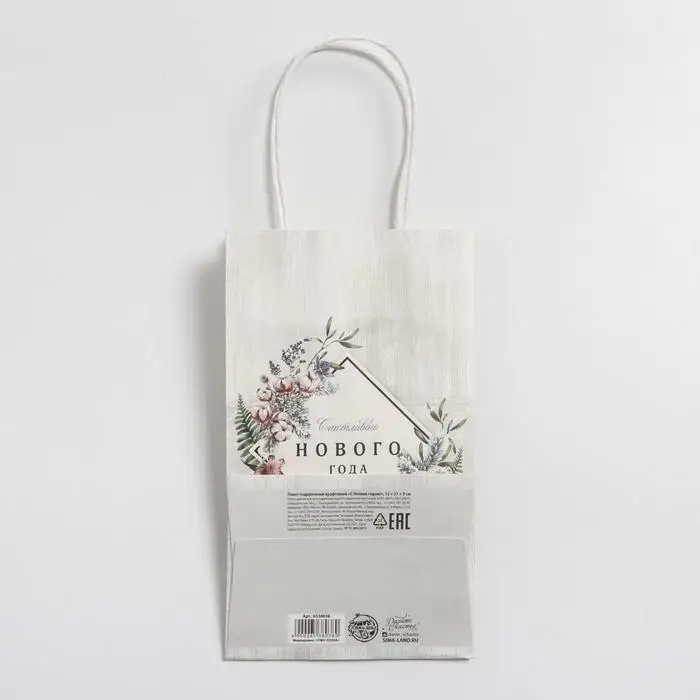 Пакет подарочный новогодний крафтовый «С Новым годом!», 12 х 21 х 9 см