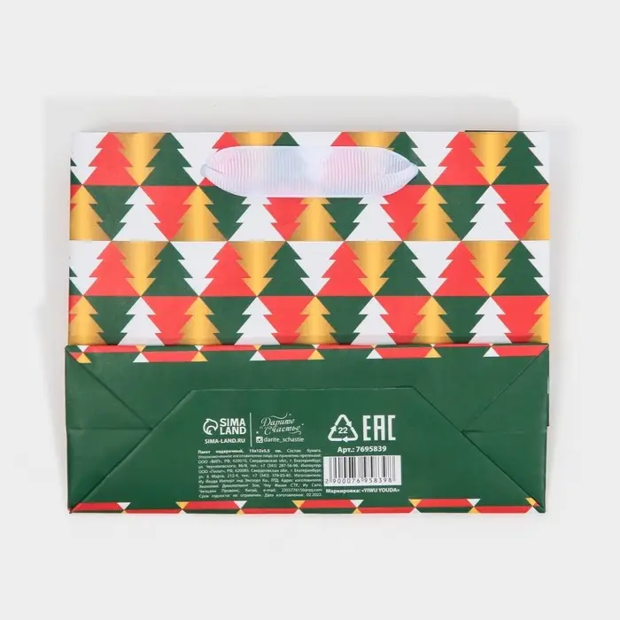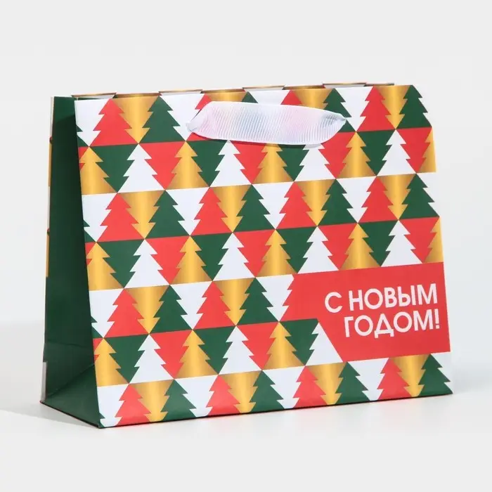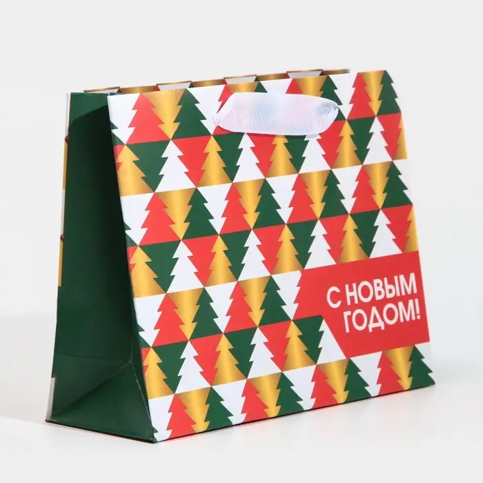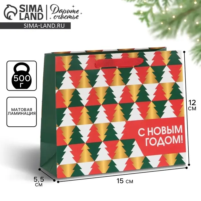 Пакет подарочный новогодний ламинированный «Ёлки», 15 х 12 х 5.5 см