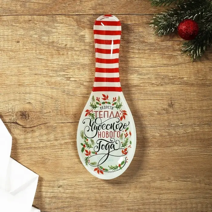 Новогодняя стеклянная подставка под ложку размером 21 х 7,5 х 2 см — отличный выбор для вашей кухни.