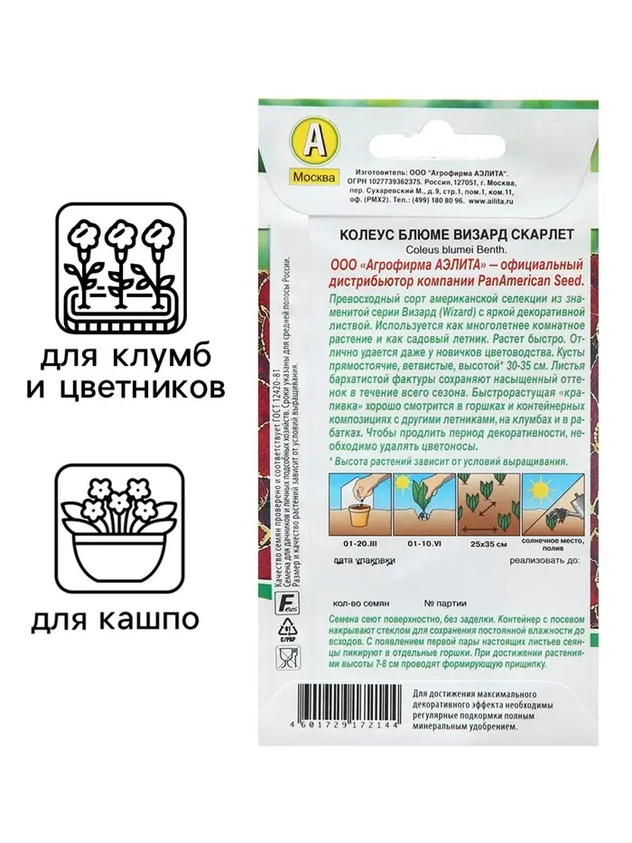 Семена цветов Колеус, серия Русский размер, 4 шт