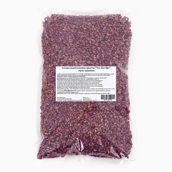 С помощью зерновой приманки вы сможете быстро и эффективно устранить проблему с грызунами, создавая безопасные условия для проживания и работы. «ТОМ КОТ БРО» — ваш надежный выбор в борьбе с крысами и мышами.