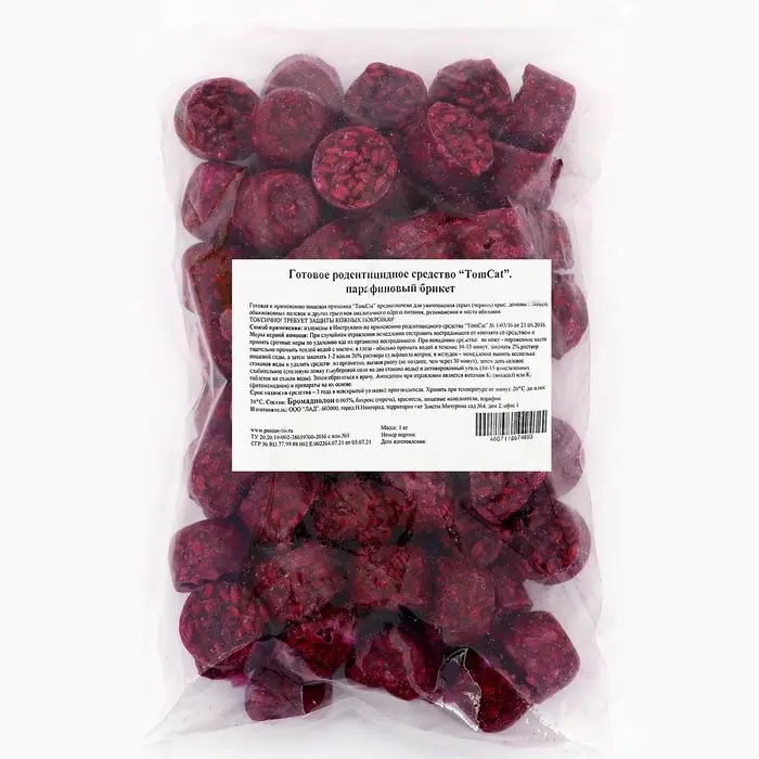 Парафиновые брикеты от грызунов с цельным зерном внутри "ТОМ КОТ" пакет, 1кг