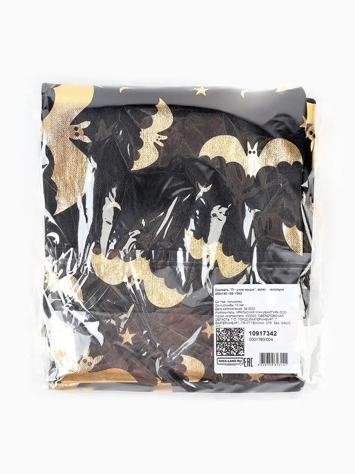 Скатерть на хеллоуин «Летучие мыши», золото, 200 х 140