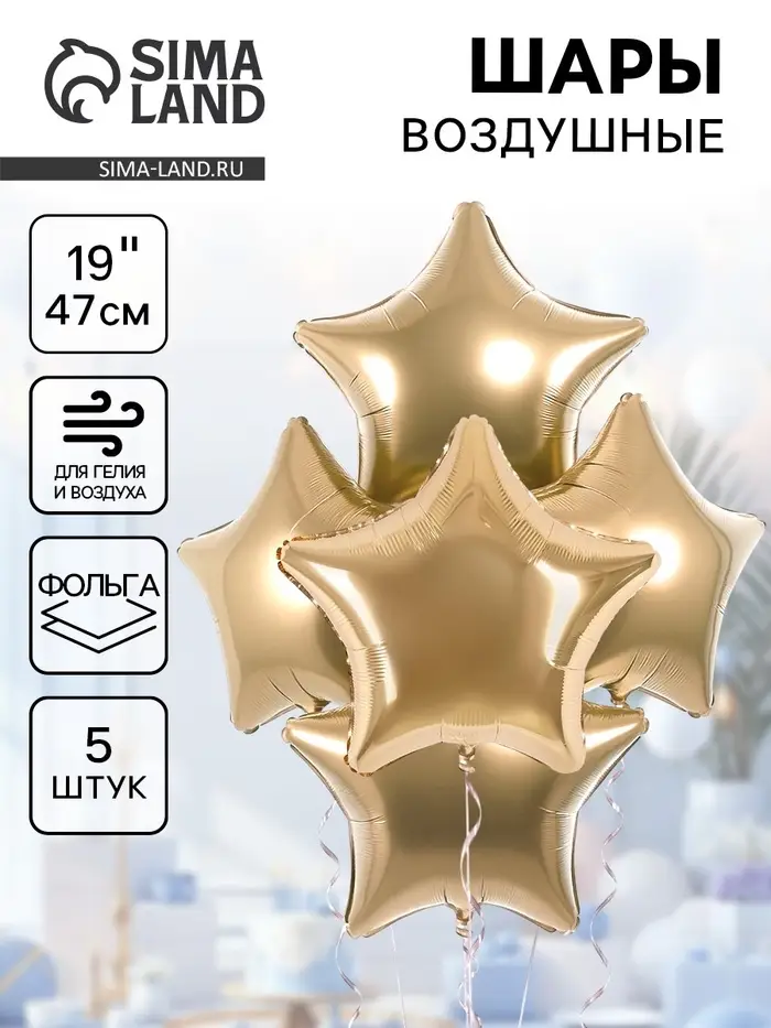 Воздушные шары фольгированные 19" «Шампань», 5 шт.