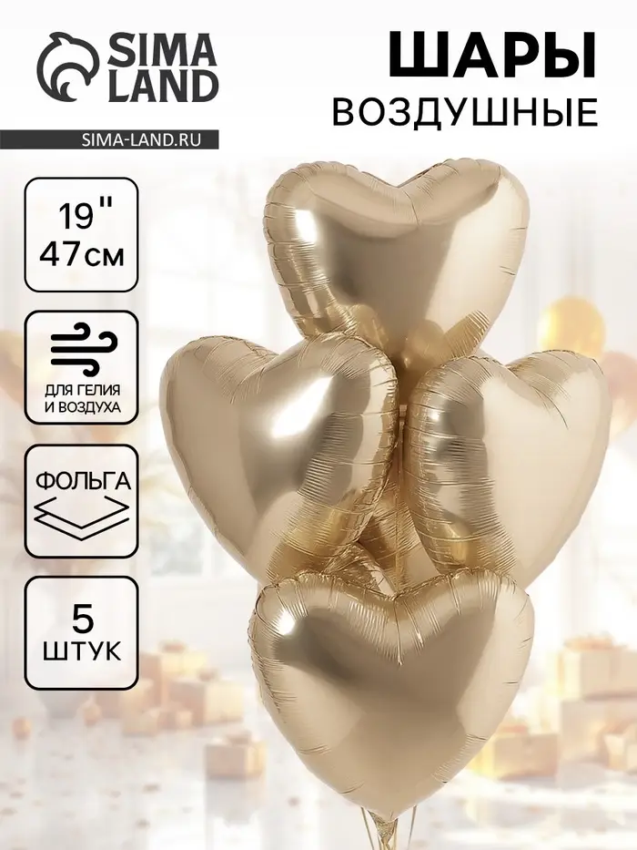 Воздушные шары фольгированные 19" «Шампань», 5 шт.