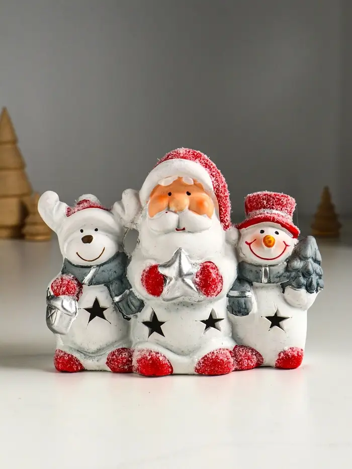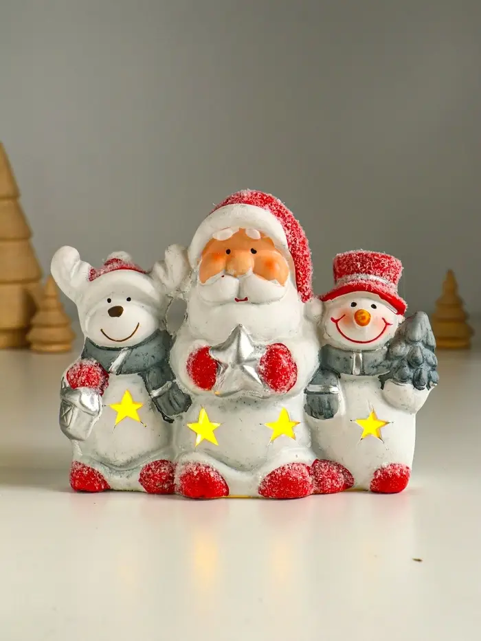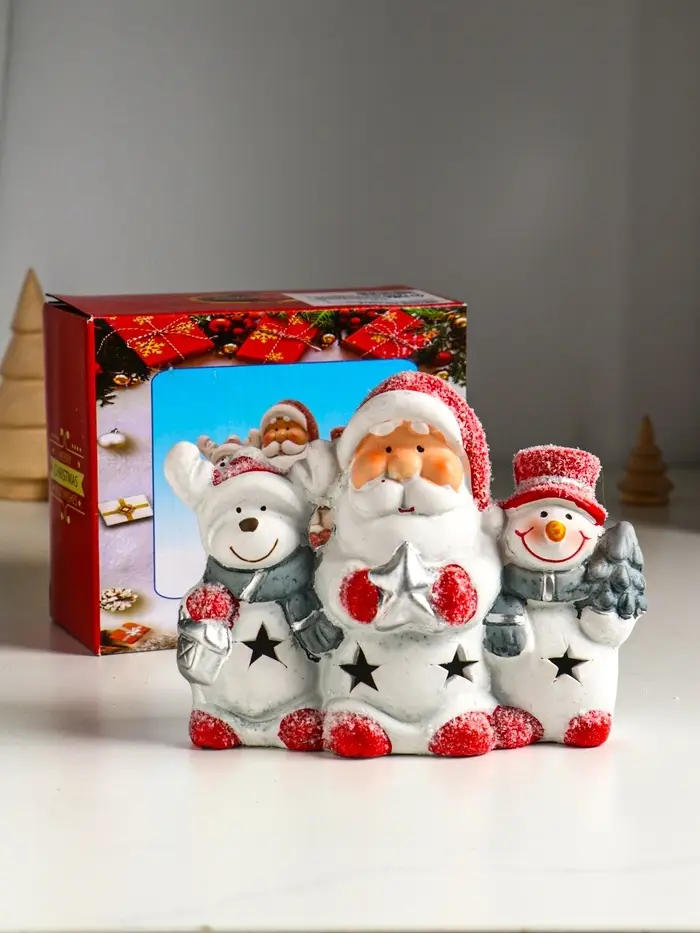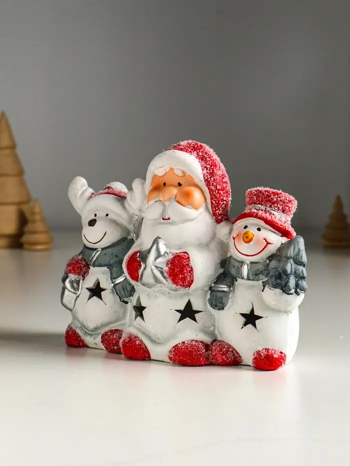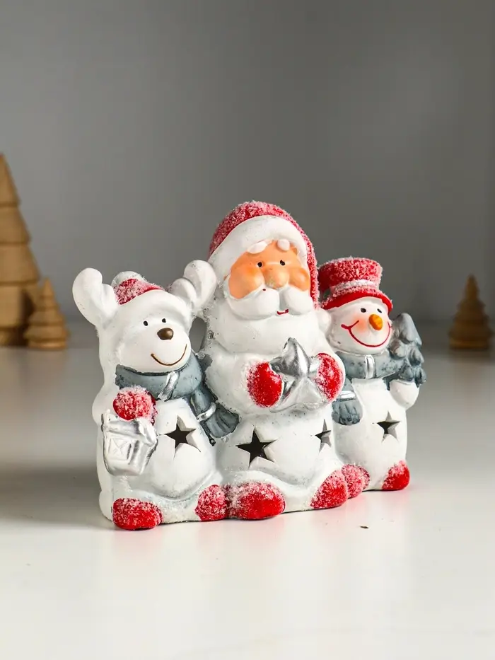 Сувенир керамика свет "Дед Мороз, снеговик и лосик" 15,5х5,8х11,5 см