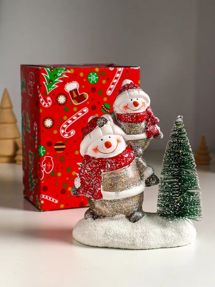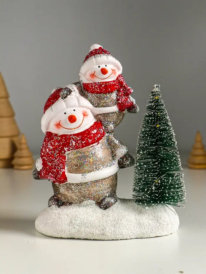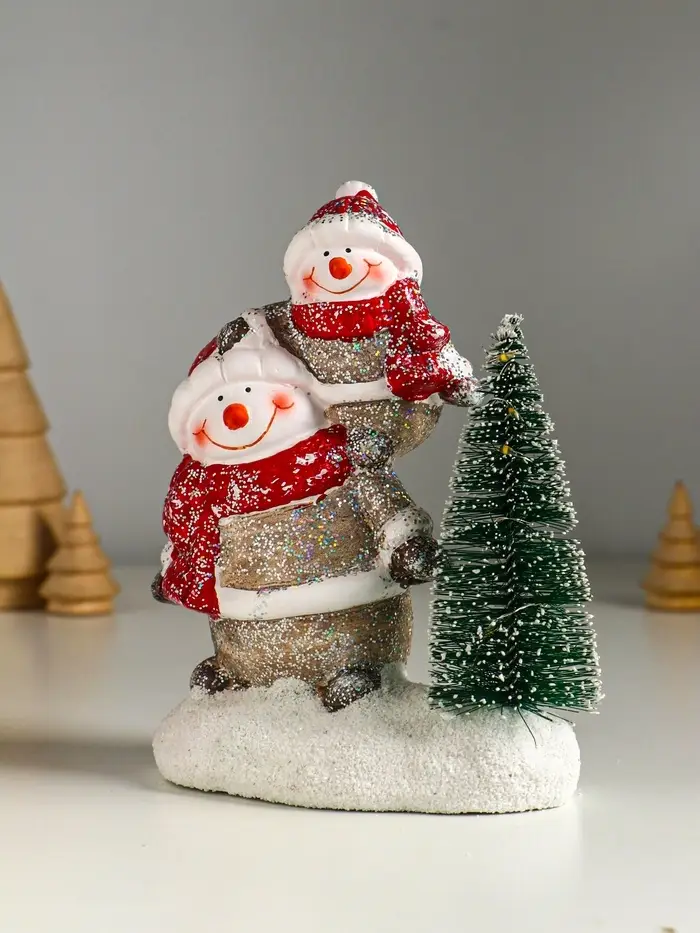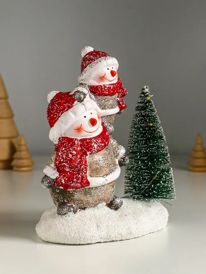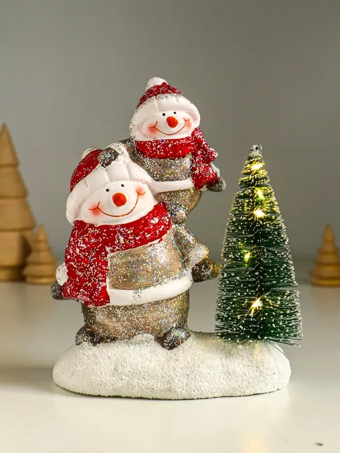 Сувенир керамика свет "Два снеговичка у ёлочки" 12х7,5х15,5 см