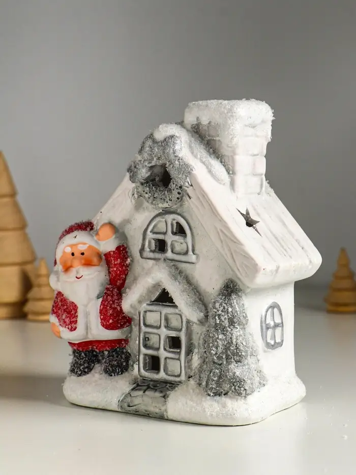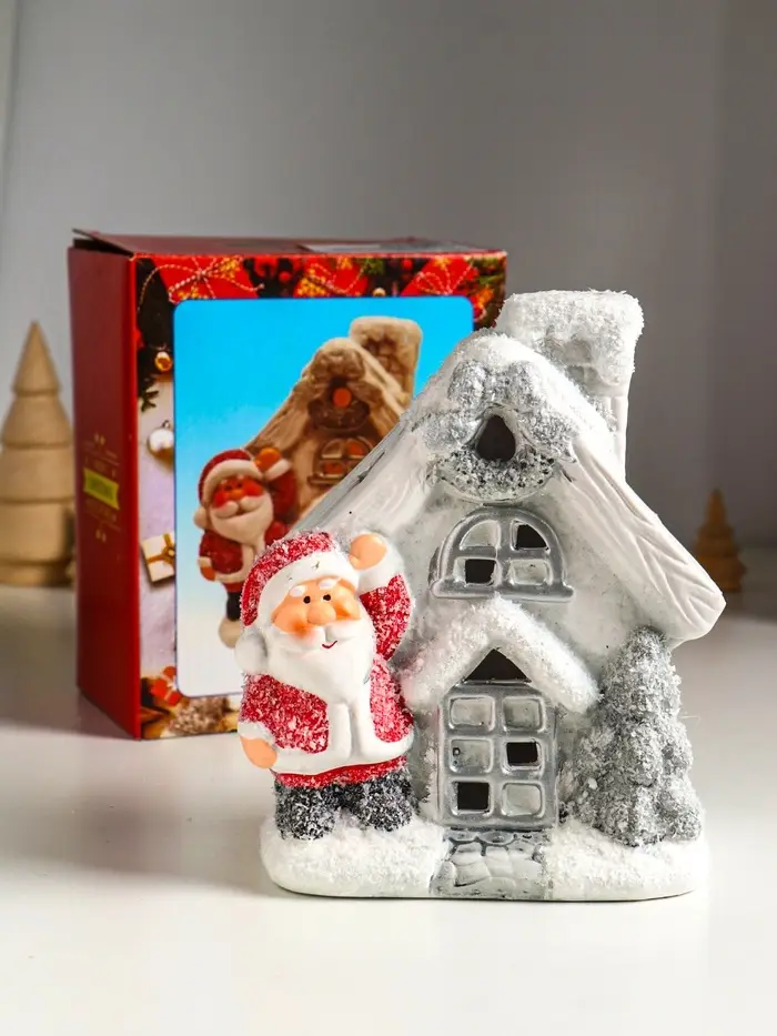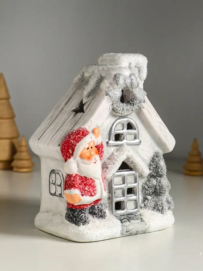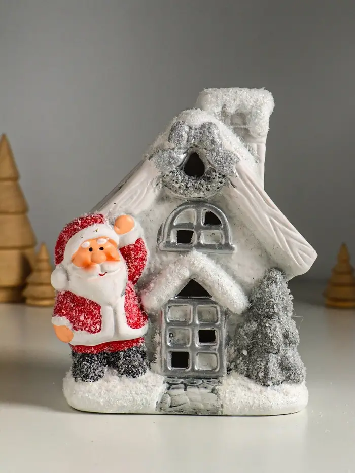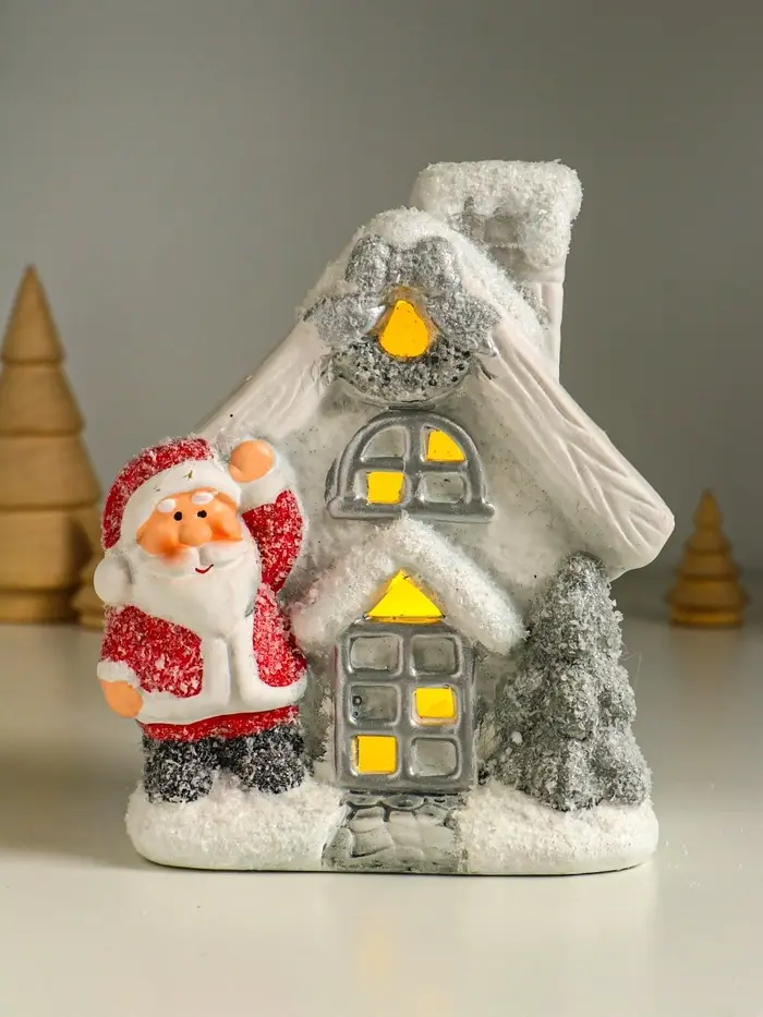 Сувенир керамика свет "Дед Мороз у домика" 12х7х15,5 см