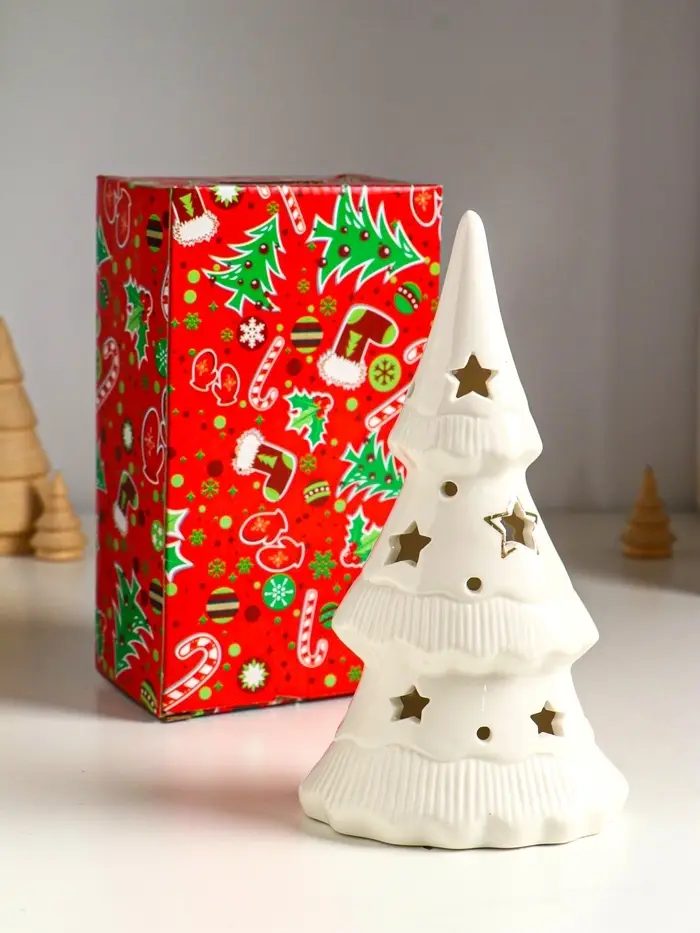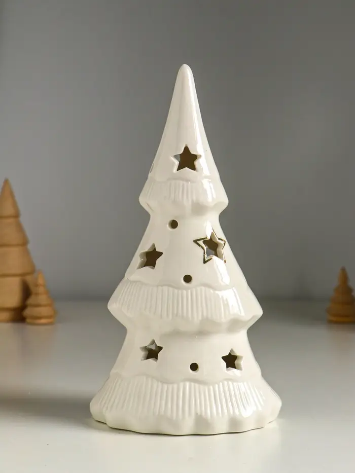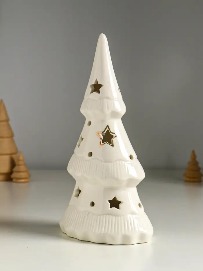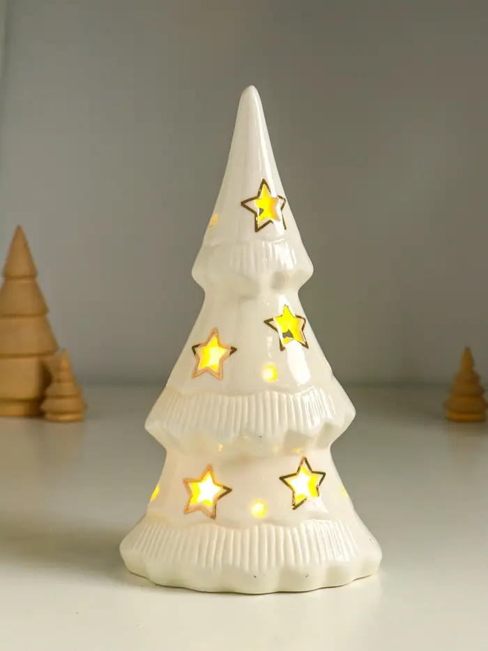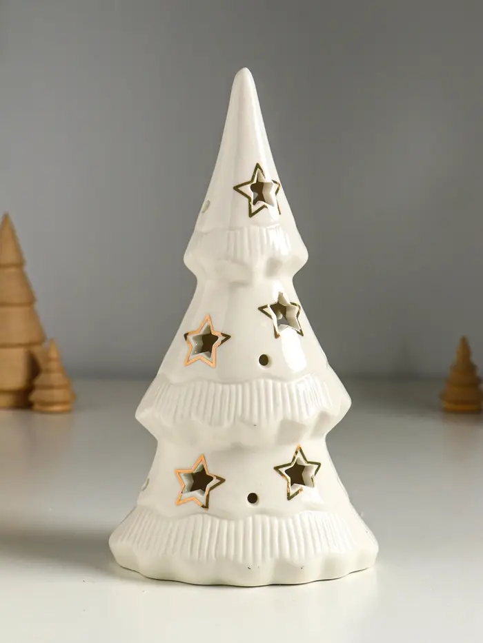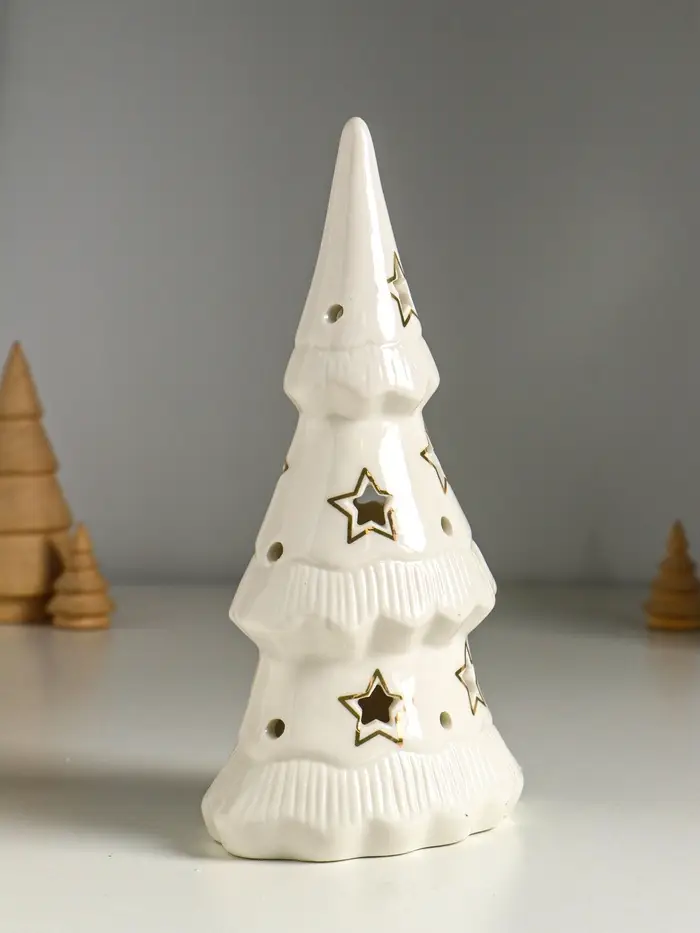 Сувенир керамика свет "Ёлочка и звёзды" белый с золотом 10,7х6,8х20 см