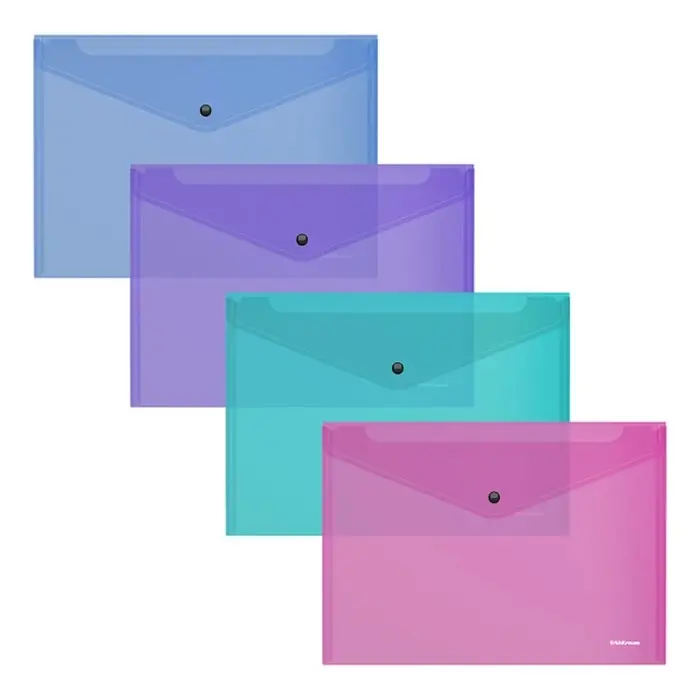 Папка-конверт на кнопке А5+ (239x189x9 мм), 180 мкм, ErichKrause Vivid, глянцевая, полупрозрачная, микс