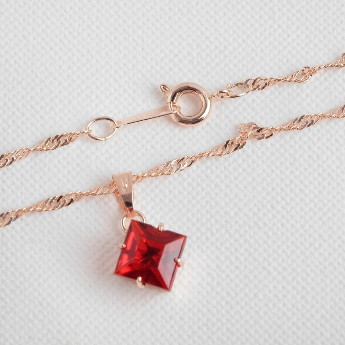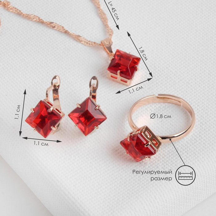 Гарнитур 3 предмета: серьги, кулон, кольцо безразмерное «Эдель» ромб, цвет бордовый в золоте, 45 см
