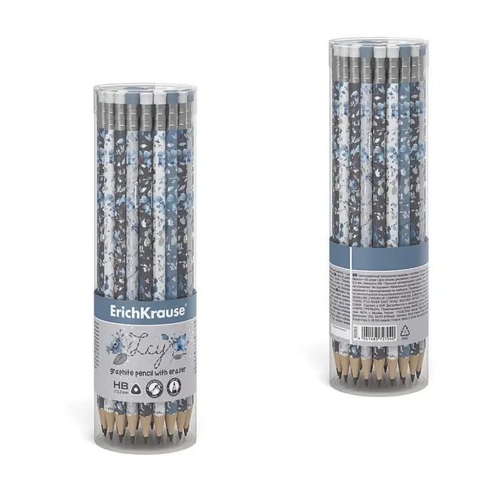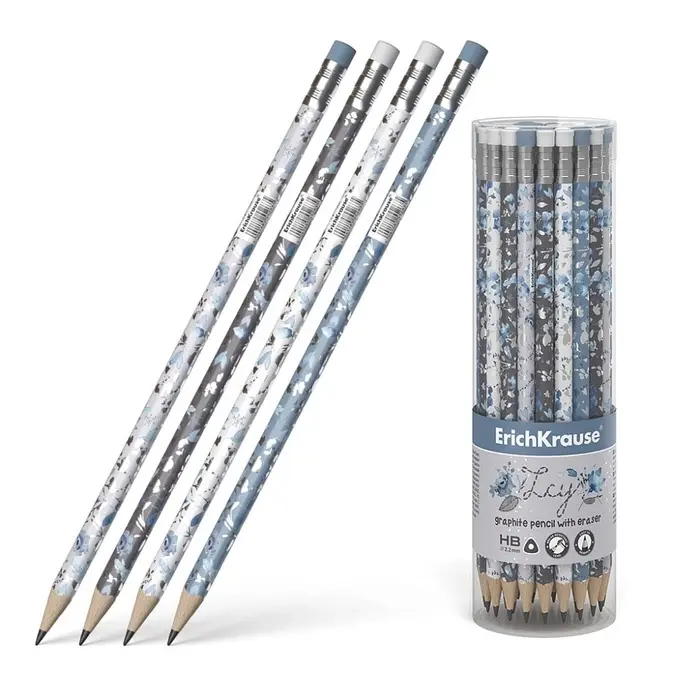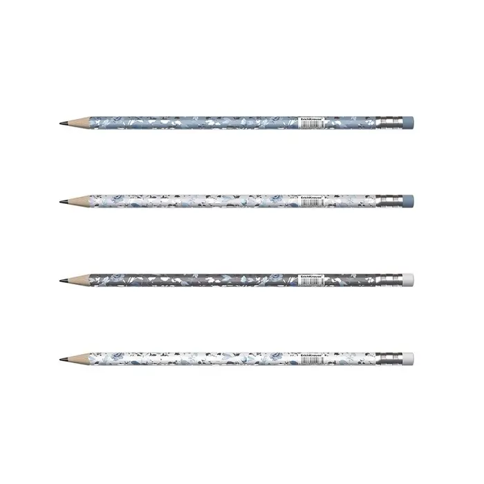 - Четыре дизайна корпуса карандаша с фольгированными элементами, ластик в цвет корпуса.