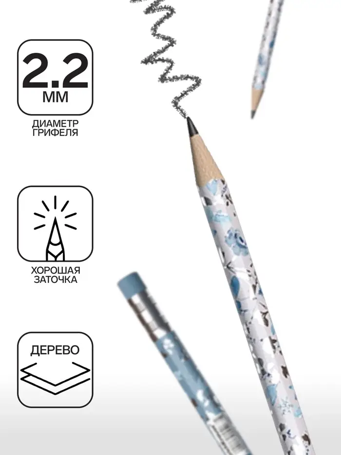 - Грифель диаметром 2.2 мм не царапает бумагу и не крошится.