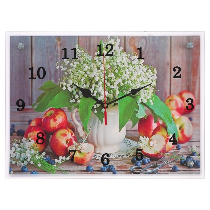 Часы-картина настенные, интерьерные "Цветы и яблоки", бесшумные, 30 х 40 см