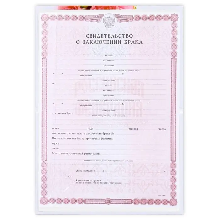 Свидетельство о заключении брака "Влюбленные" софт тач, 31х22,5 см