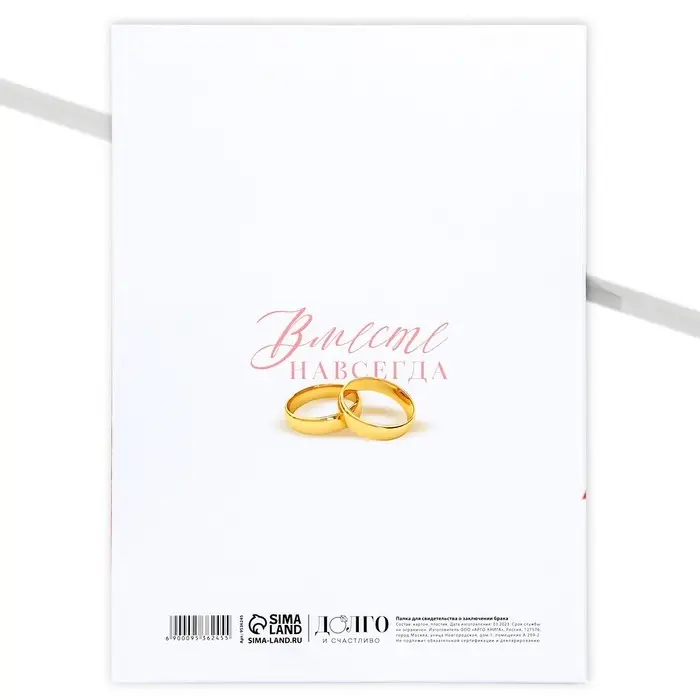 Папка для свидетельства о заключении брака «Вместе навсегда», А4