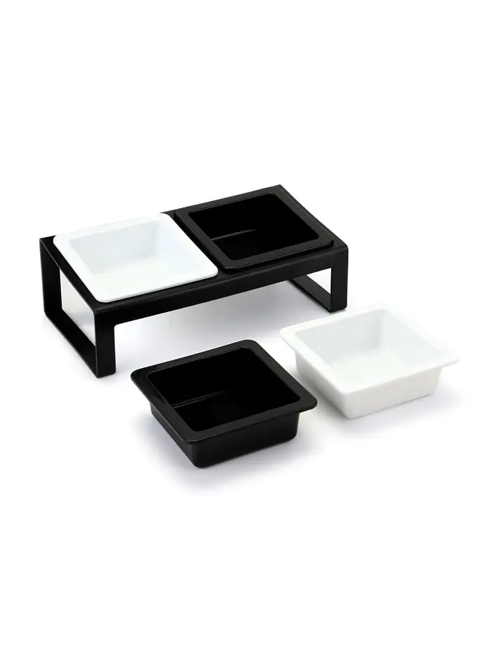 Миски с подставкой КВАРТЕТ пластиковые двойные (+ 2 миски в подарок), 2*0,38л