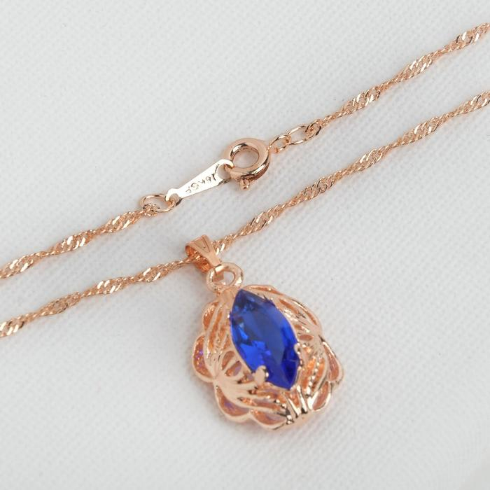 Гарнитур 3 предмета: серьги, кулон, кольцо безразмерное «Эдель» ажурный овал, цвет синий в золоте, 45 см