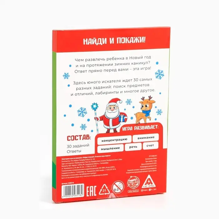 Настольная игра на внимание новогодняя «Найди и покажи. В поисках Деда Мороза», на Новый год, 30 заданий