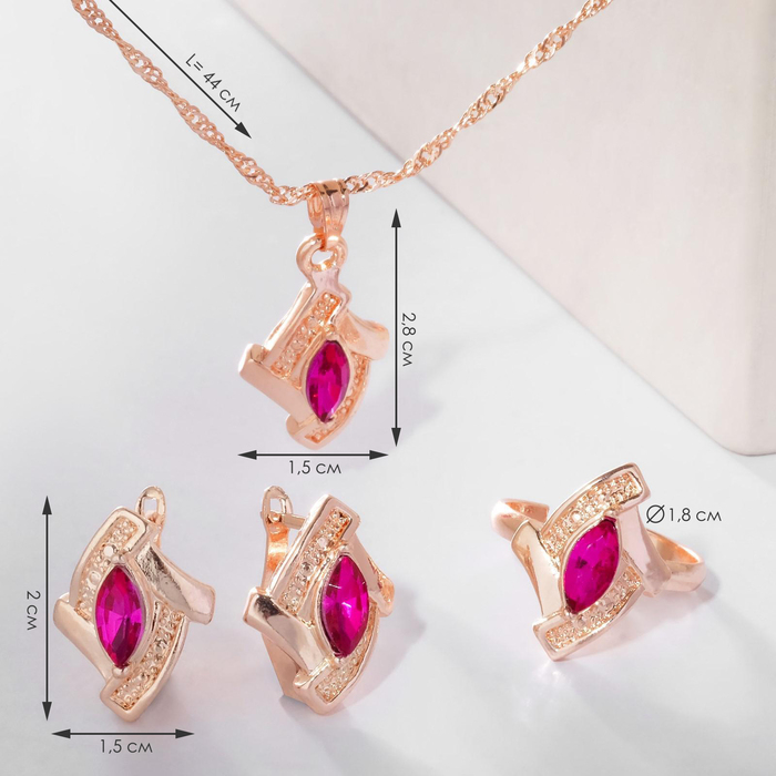 Гарнитур 3 предмета: серьги, кулон, кольцо «Эдель» ромб совершенство, цвет розовый в золоте, 45 см