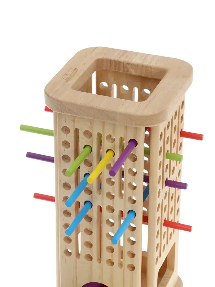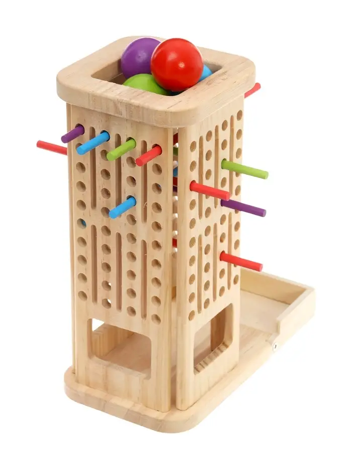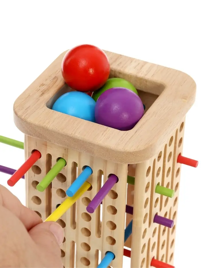 Сортер помогает ребёнку освоить важные навыки: различать цвета и формы, развивать логическое мышление и мелкую моторику. Играя с элементами, малыш учится сравнивать, делать выбор и выполнять последовательные действия, тренируя терпение и концентрацию внимания. Задачи по распределению фигурок по цвету или форме стимулируют когнитивные способности и творческий подход. Благодаря натуральному материалу и продуманной конструкции, игрушка безопасна и прослужит долго, сохраняя свою привлекательность.