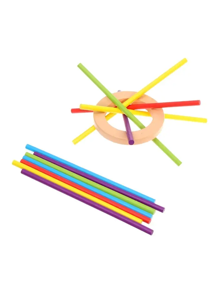 - Простая механика: ребёнок сортирует палочки и фигурки по цветам и формам, размещая их в соответствующие отверстия.