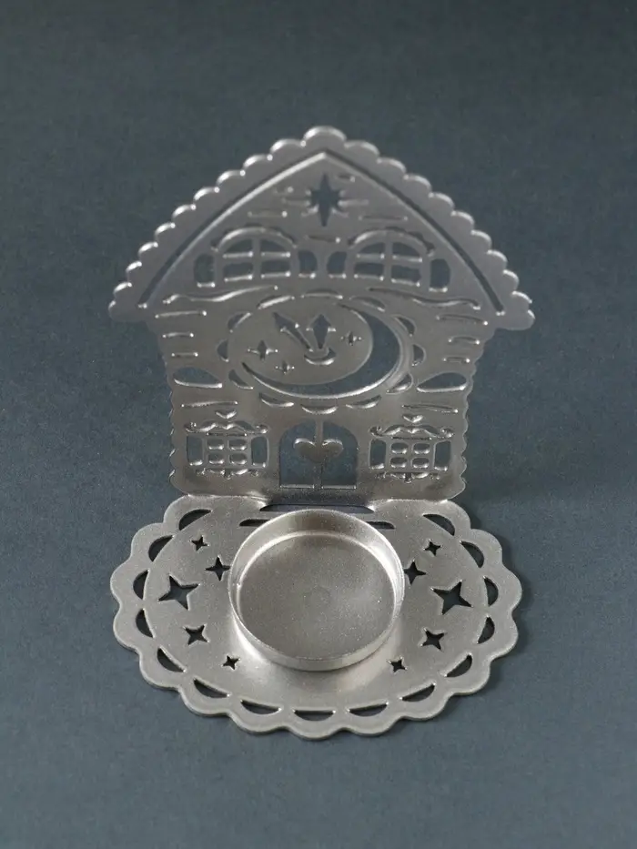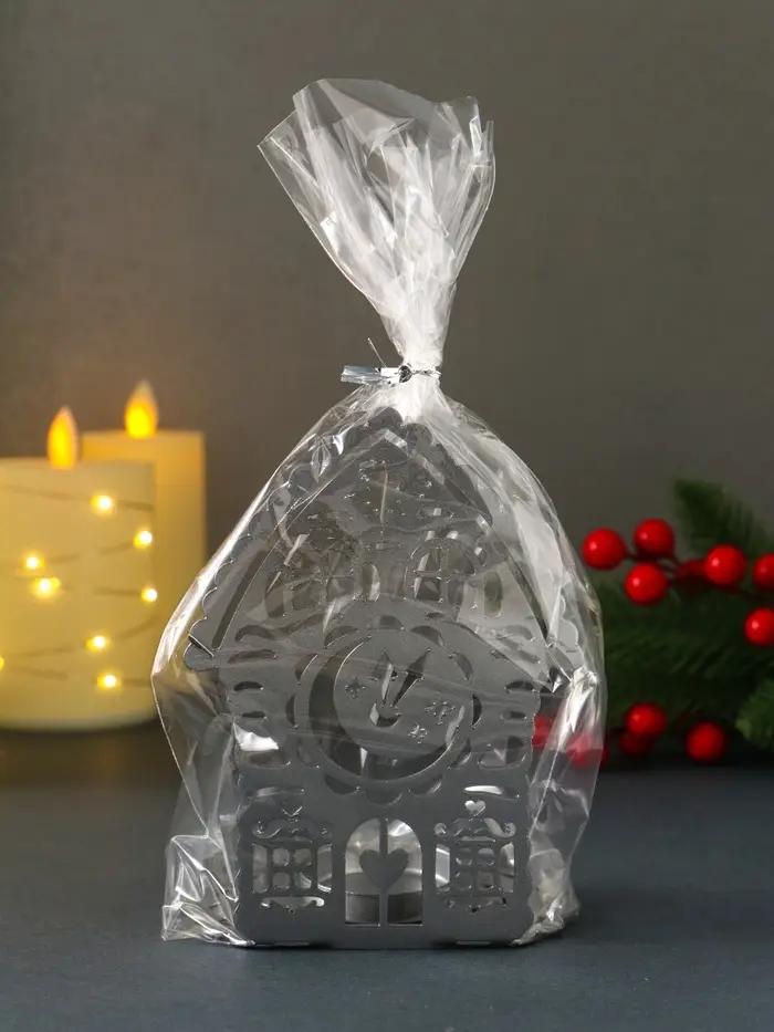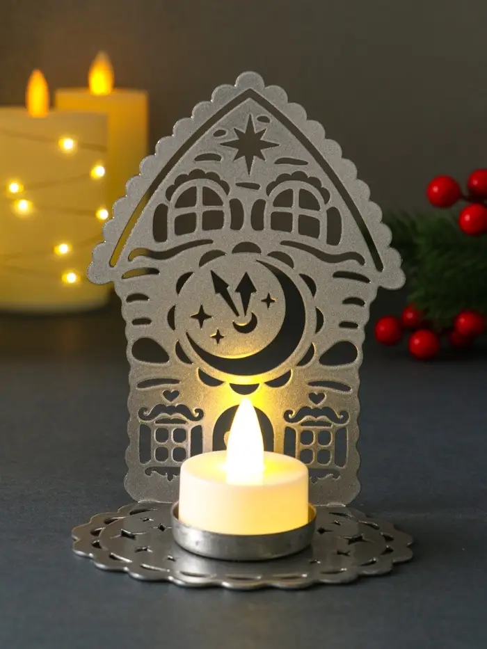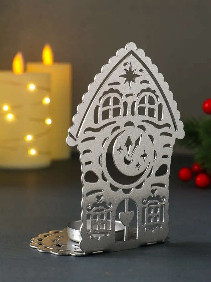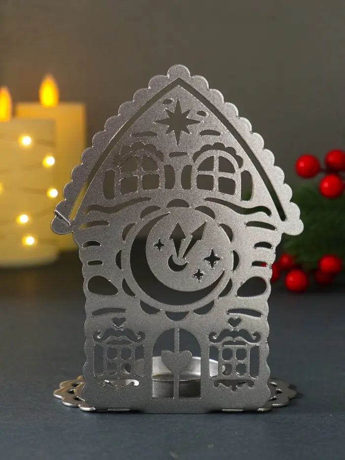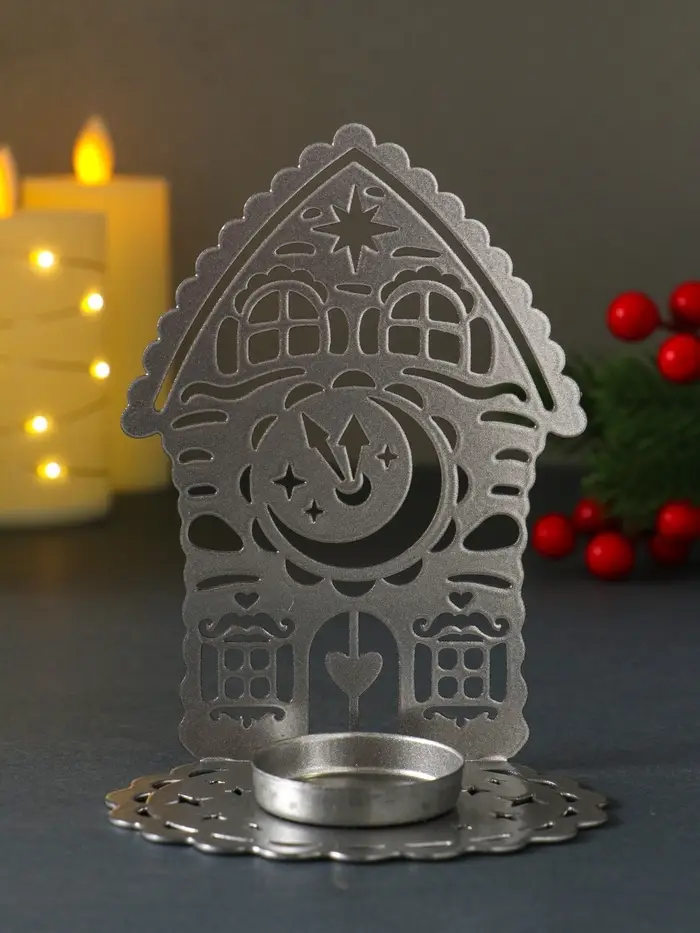 Подсвечник новогодний "Домик с часами" серебряный 6,7х10х13,5 см