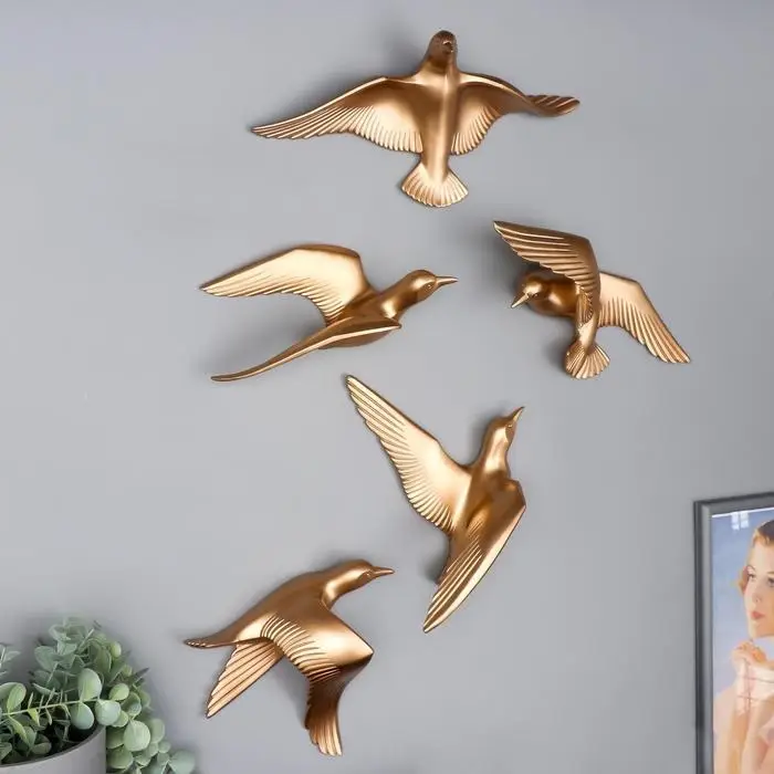 Сувенир полистоун настенный декор "Чайка" МИКС золото
