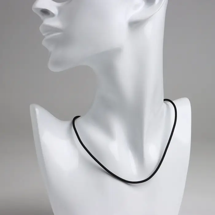 Шнурок каучуковый, неполый, 55 см, d=2 мм, чёрный в серебре