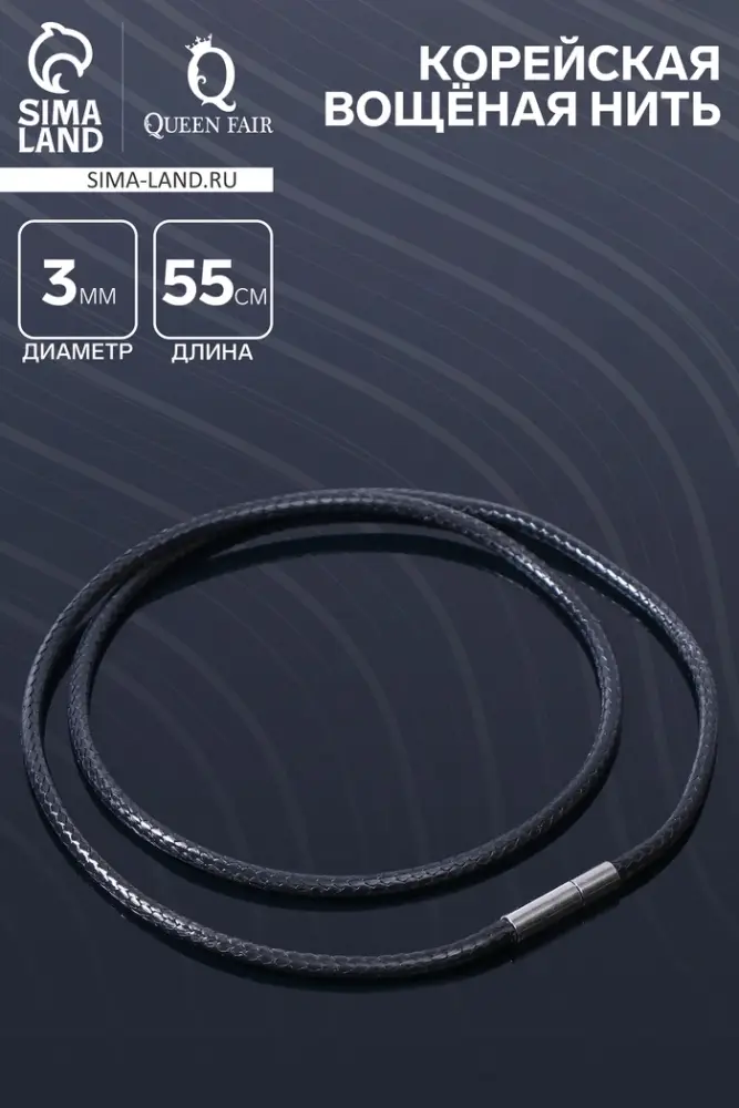 Корейская вощёная нить, 55 см, d=3 мм, цвет чёрный