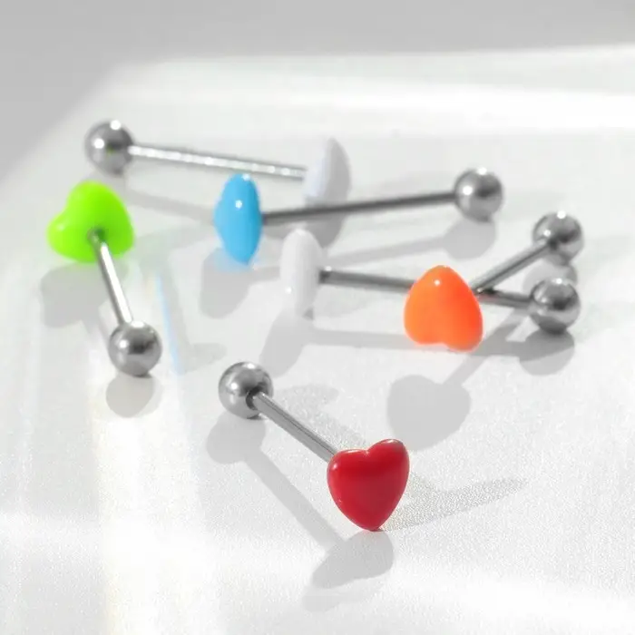Пирсинг в язык «Сердце» минимал, L=1.9 см, МИКС в серебре