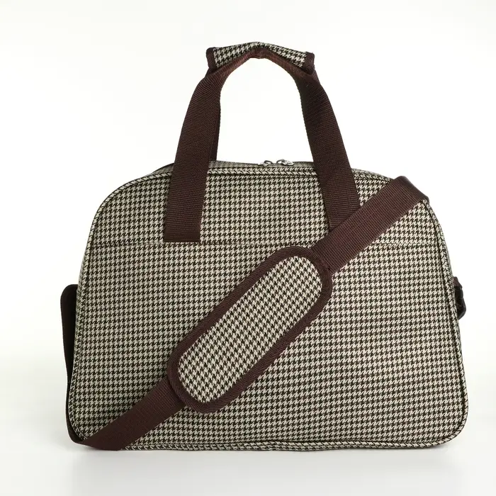 Сумка дорожная на молнии, наружный карман, длинный ремень, цвет бежевый/коричневый