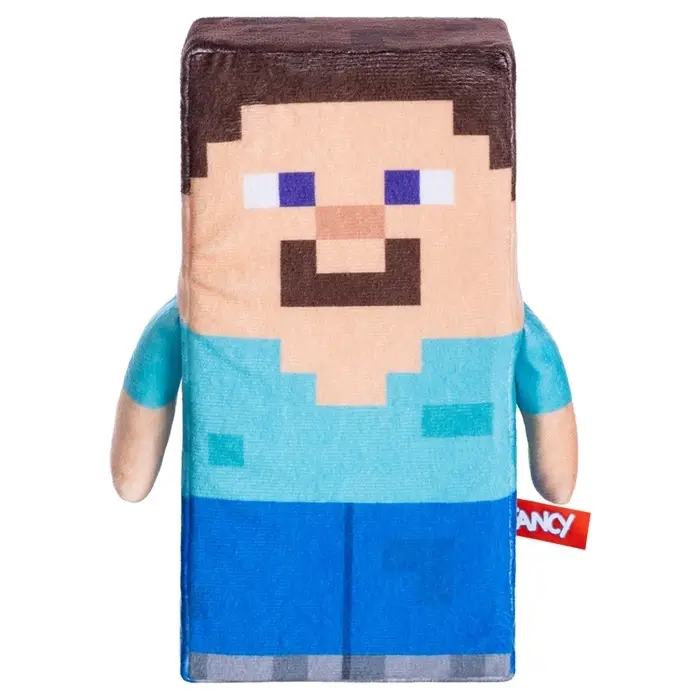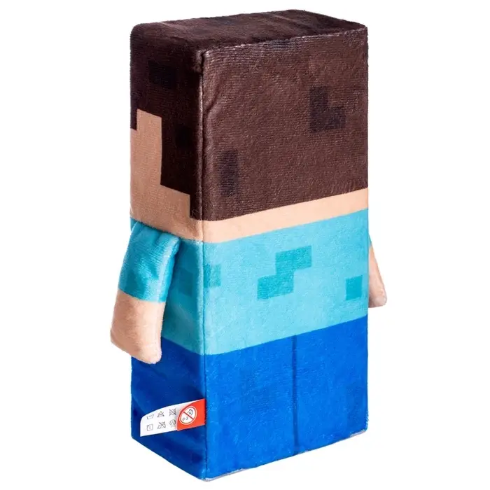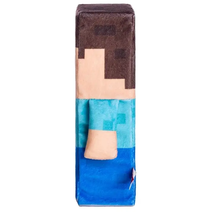 - Игрушка выполнена в виде любимого персонажа компьютерных игр — кубического Стива, который привлекает внимание своим узнаваемым образом и яркими цветами.