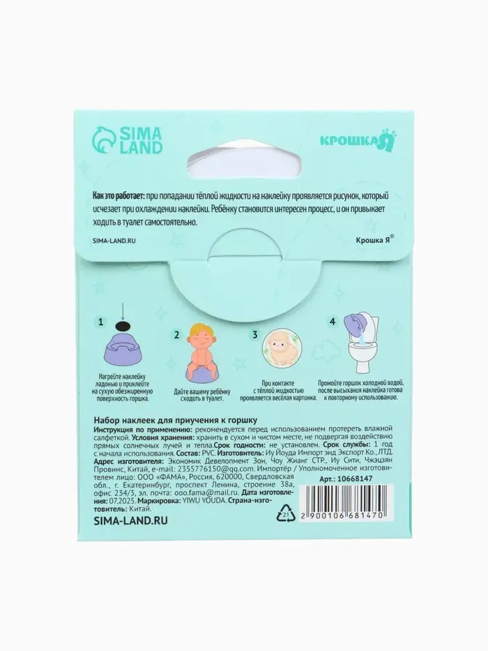 Набор наклеек для приучения к горшку «Зверята» 5шт. с термо слоем 65*65 мм