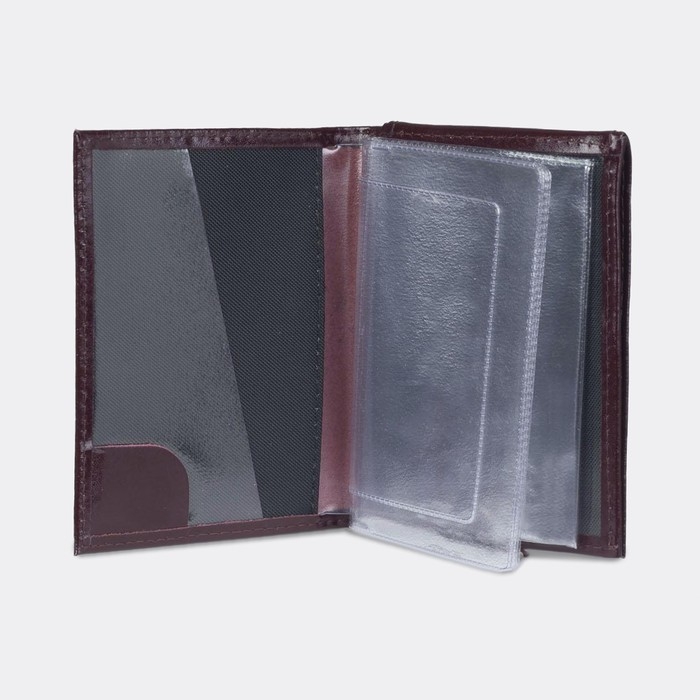 Обложка для удостоверения и автодокументов на кнопке, цвет бордовый