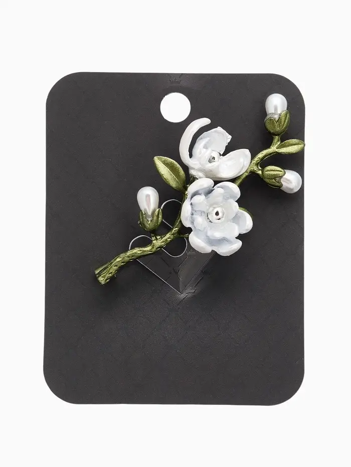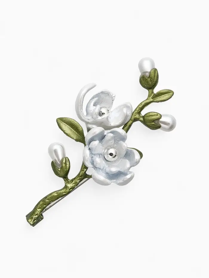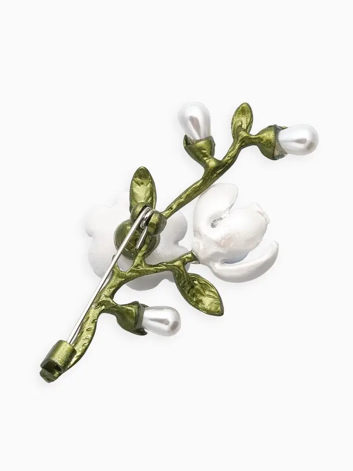 Брошь "Веточка магнолии" цветок, с эмалью, цветная