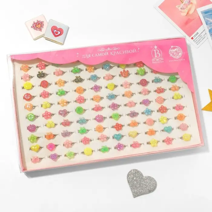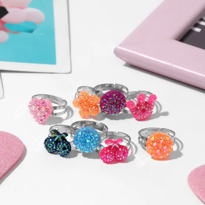 Кольцо детское «Выбражулька» ассорти для девочек, форма МИКС, цвет МИКС, безразмерное