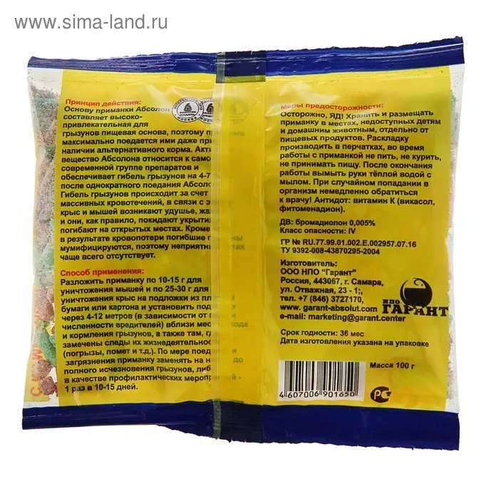 средство предназначено для уничтожения мышей и крыс;