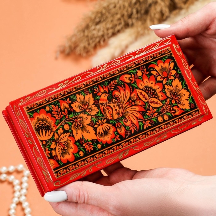 Шкатулка - купюрница «Узоры», 8,5×17 см, красная, лаковая миниатюра