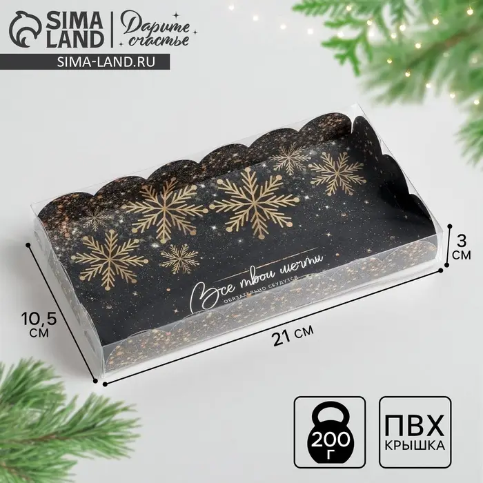 Коробка для кондитерских изделий с PVC крышкой «Мечта», 10.5 х 21 х 3 см