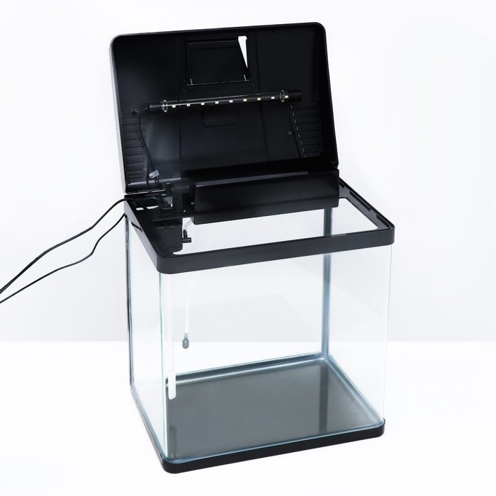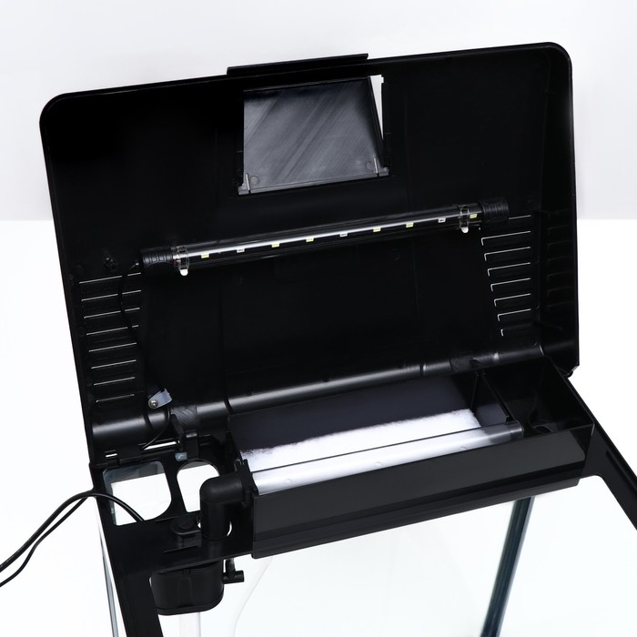Аквариум полностью готов к работе. В него встроены фильтр и светодиодная лампа (в крышке аквариума).