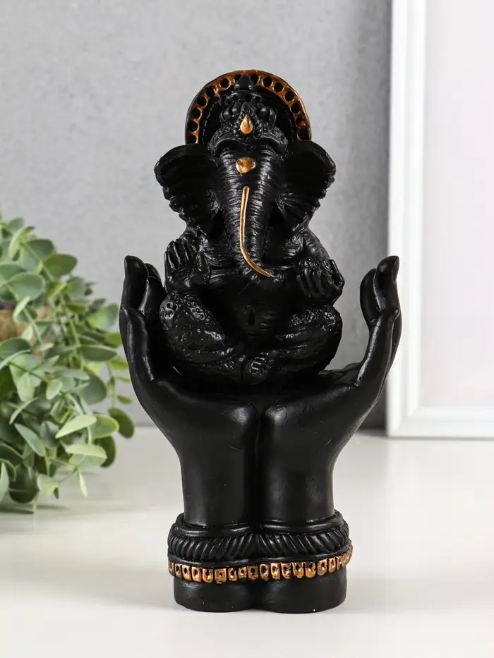 Фигура гипс "Ганеш в руках", высота 22 см, черный