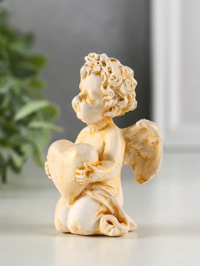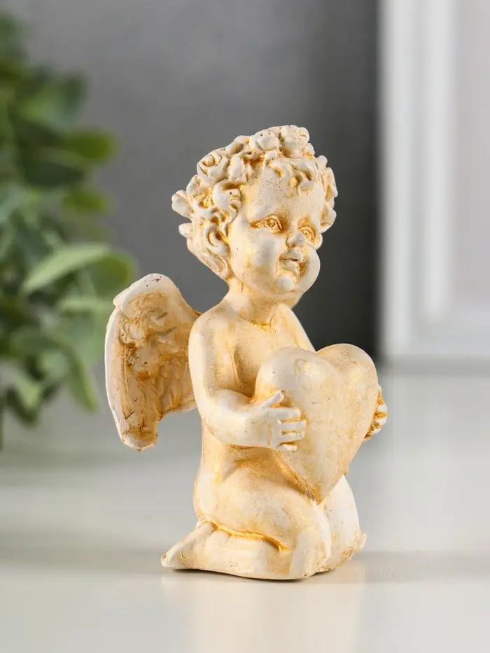 Фигура гипс "Ангел с сердцем" 6х8х5см, позолота