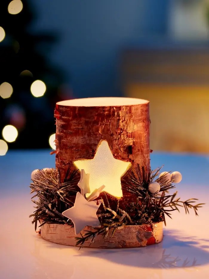 Светодиодная фигура деревянная «Декоративный пень», 1 LED, от батареек AAAx2, свечение тёплое белое
